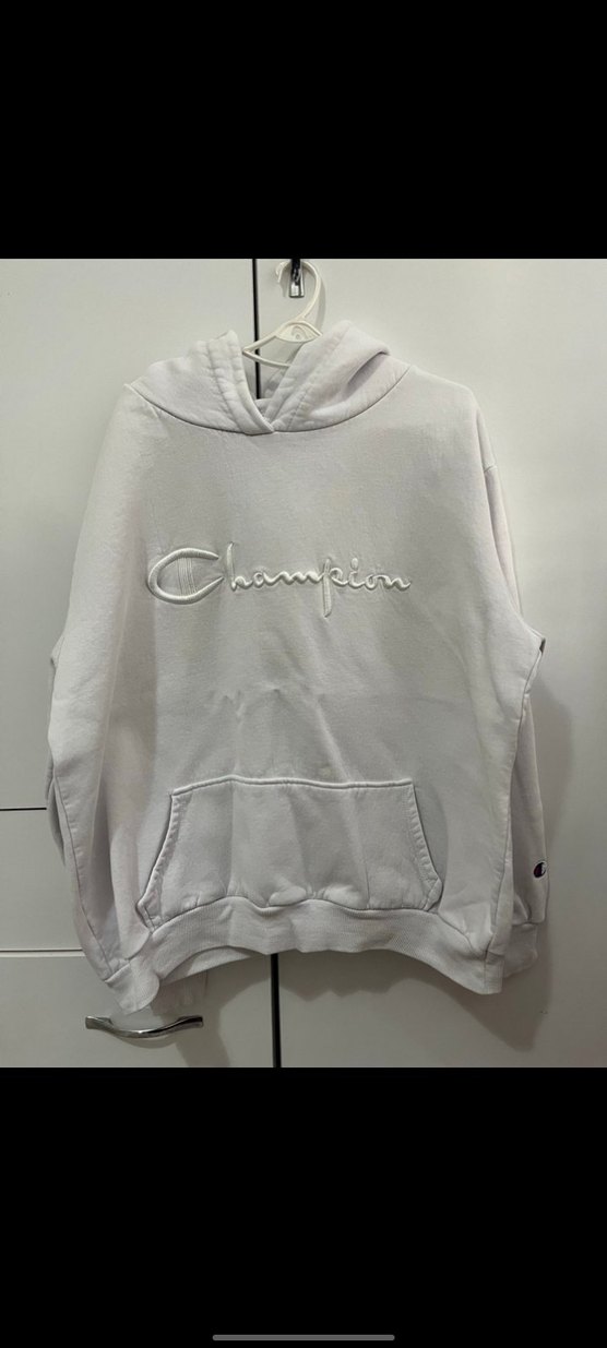 Champion marka, rahat kesim ve uzun kollu beyaz kapüşonlu sweatshirt. Ön cep ve nakışlı logo detaylı, yumuşak keten kumaştan üretilmiştir.