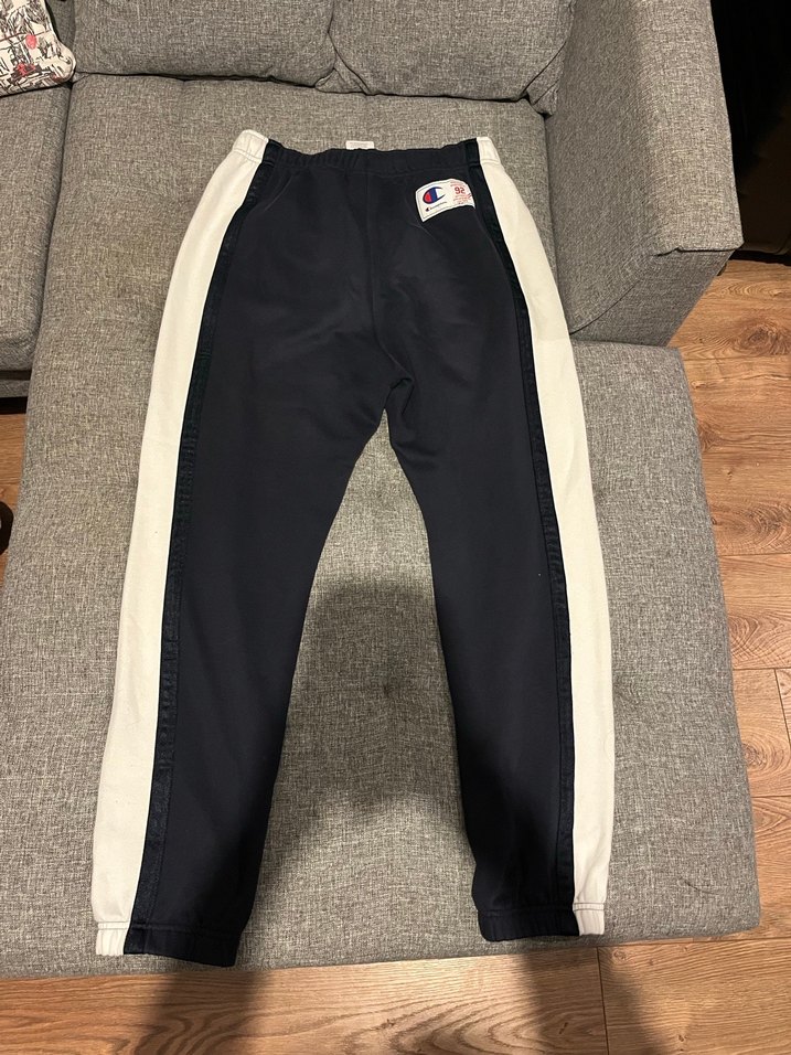Champion markalı, siyah ve beyaz yan şeritli, yumuşak ve sıcak kumaştan üretilmiş, bol kesim erkek eşofman altı, cırt cırt detaylı ve lastikli bel ile az kullanılmış artık olmadığı için satıyorum fiyat konusunda indirim yapılır hasarı yoktur