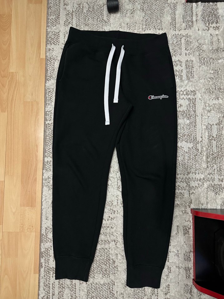 Champion marka siyah, rahat kesimli ve midi boy kadın eşofman altı. Yumuşak ve sıcak kumaştan yapılmış, beyaz bağcık ve küçük logo detayına sahip spor tarzda.