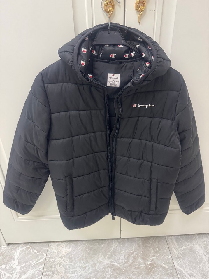 orjinaldir .Kapüşonlu ve fermuarlı, siyah renkli çocuk montu. Yumuşak ve sıcak kumaştan yapılmıştır, iç kapüşonda Champion logosu bulunur.