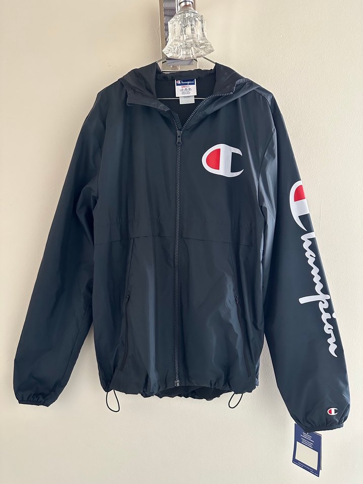 Siyah Champion erkek yağmurluğu, fermuarlı önü, uzun kollu ve kapüşonludur. Salaş kesim, göğüs ve kolda baskılı logo, yumuşak ve sıcak kumaştan spor şıklığı sunar. ️