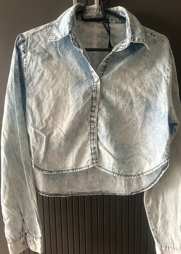 Az giyilmiş crop kot gömlek