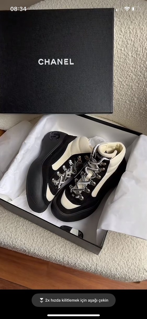 CHANEL beyaz siyah renklerde, dolgu topuklu ve tokalı kadın spor ayakkabısı. Spor sokak giyim tarzı için uygun. Sipariş üzerine geliyor bilginiz olsun detaylı bilgi için mesaj atabilirsiniz