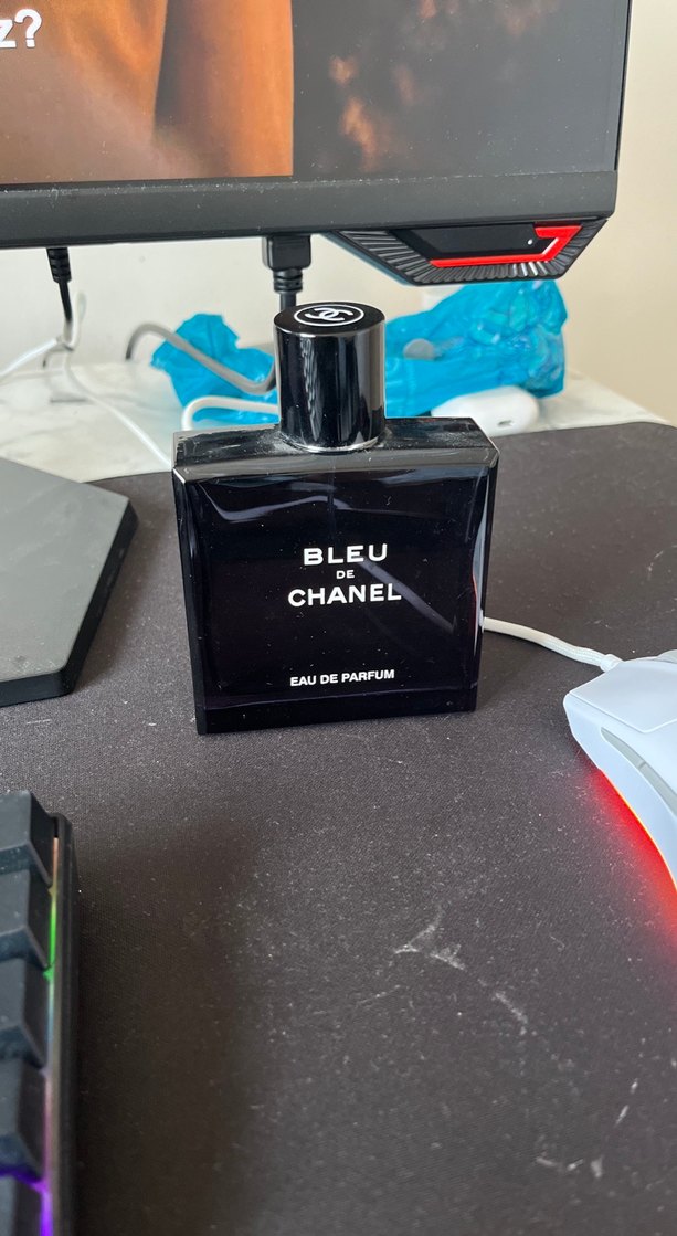 Chanel Bleu de Parfum, koyu mavi renkte, Parisli karşı kültür tarzında erkek parfümüdür. Şık tasarımlı şişede Chanel logosu vardır. ürünün yarısından fazlası hala duruyor ve orjinaldir