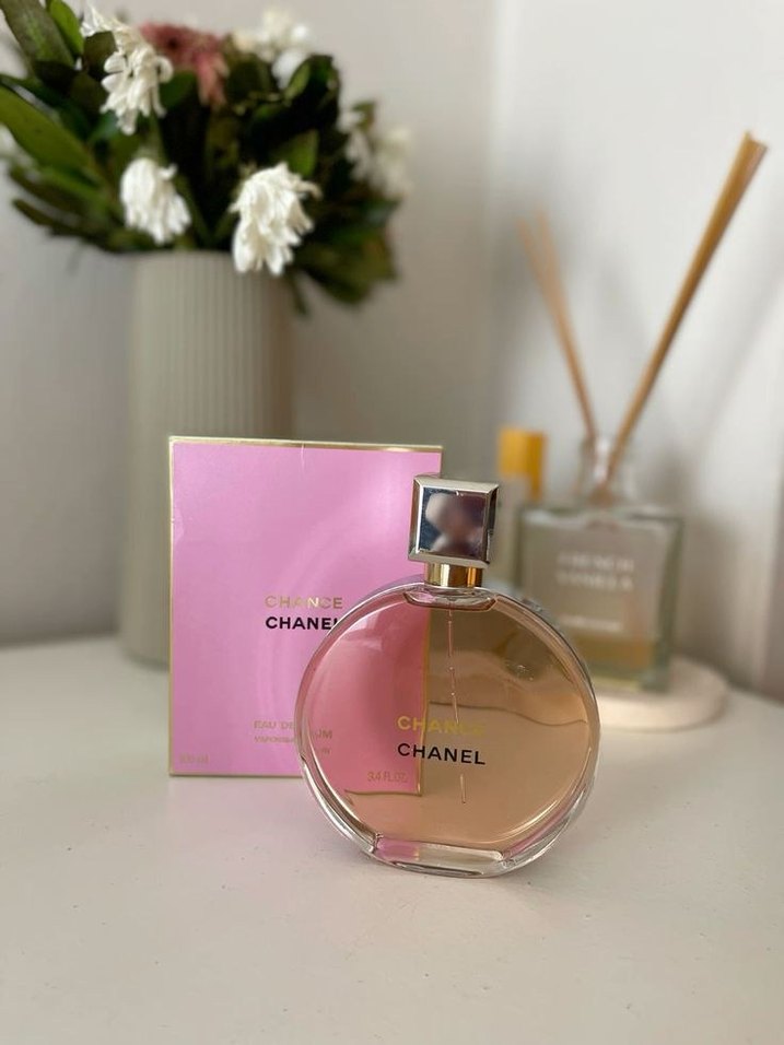 Chanel Chance kadın parfümü, 50 ml şişede yuvarlak tasarıma ve açık pembe ambalaja sahiptir. Zarif ve hafif bir koku sunar.