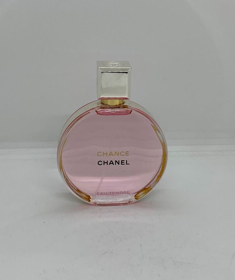 Orjinaldir iade garantisi vardır Chanel Chance kadın parfümü, yuvarlak şeffaf cam şişede pembe renkte, zarif tasarıma sahip.
