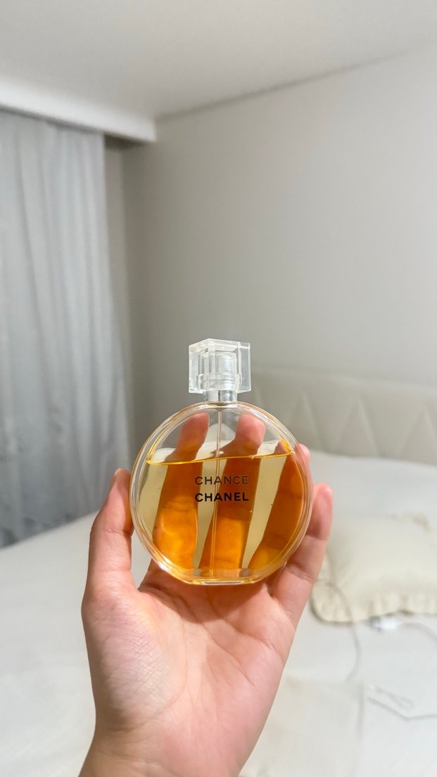 Chanel Chance kadın parfümü, şeffaf yuvarlak şişede ve şeffaf kapaklı, amber renkli kokusu ile öne çıkar. Orijinal biraz kullandım maskülen bir kokuya sahip Duty dereden aldım kutusu yok maalesef
