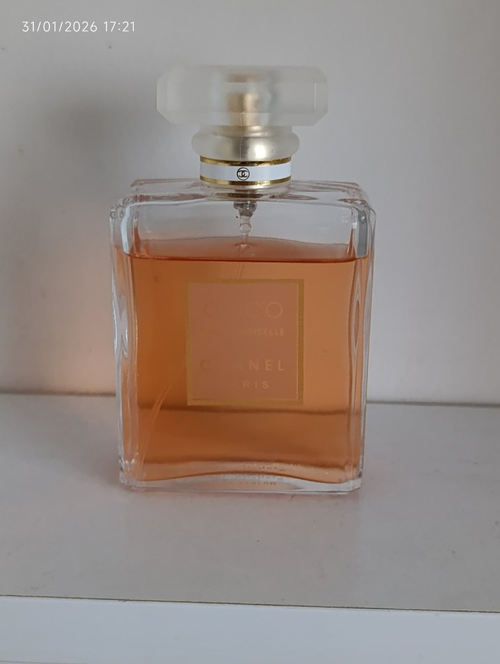 Şeffaf cam şişede, yumuşak şeftali tonunda Chanel Coco Mademoiselle kadın parfümü. Mat kapak ve altın detaylar bulunur. Üstün kalıcılık vardır.