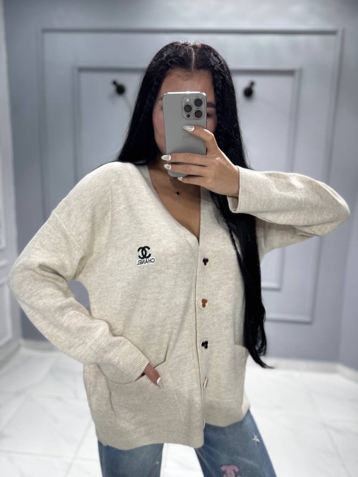 Chanel Düğmeli Gri Oversize Hırka