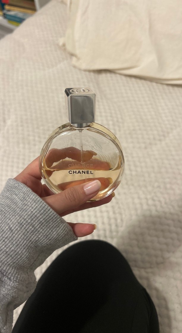 Chanel kadın parfümü, yuvarlak cam şişede ve gümüş kapaklıdır. İçinde açık kehribar renginde koku bulunur.