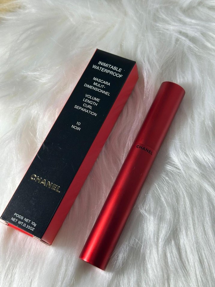 Chanel kırmızı parlak tüpte suya dayanıklı maskara, hacim, uzunluk, kıvrım ve ayrım etkileri sağlar.