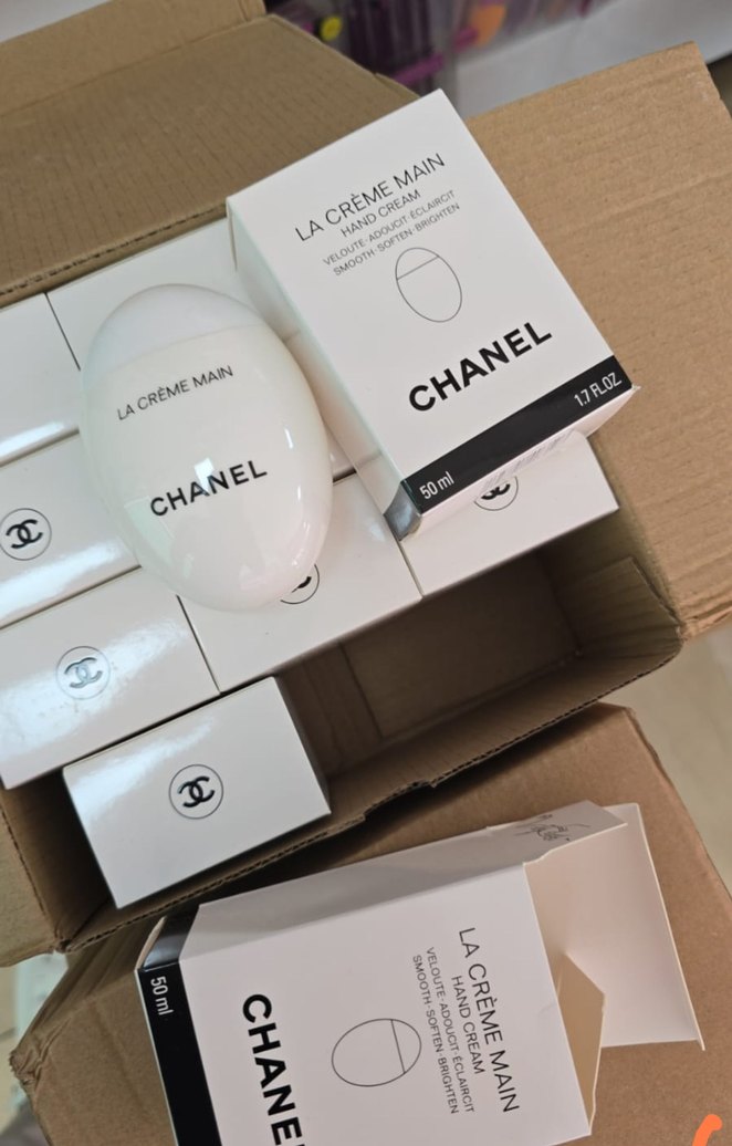 Chanel La Crème Main el kremi, 50 ml, yumuşak oval ambalajda. Cildi nemlendirir ve yumuşatır.
