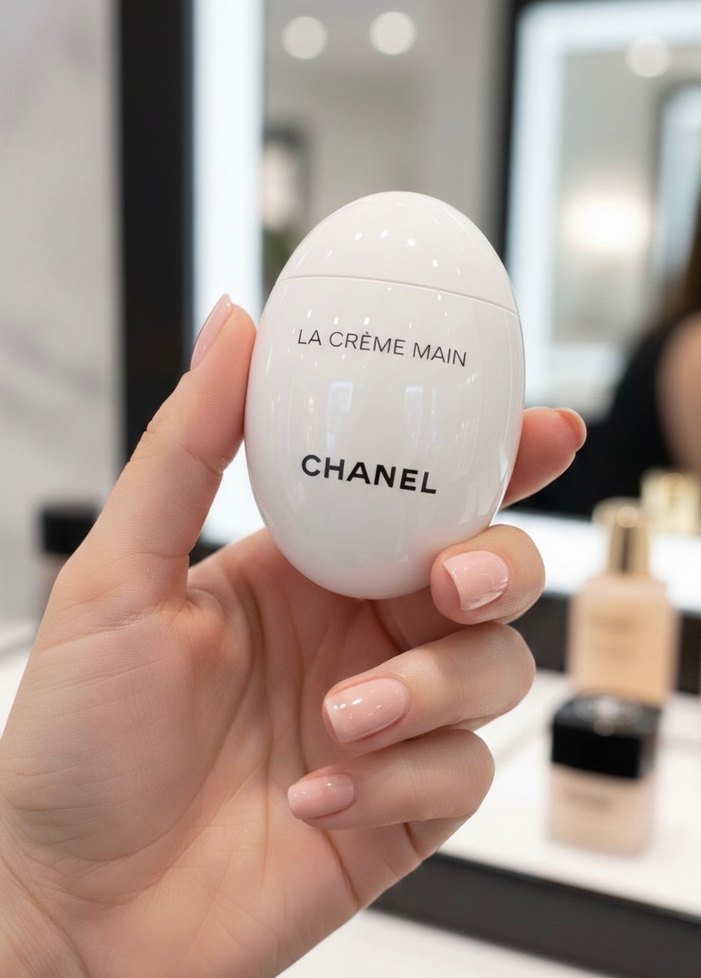Chanel La Crème Main el kremi, pürüzsüz beyaz kapta, eller için nemlendirici bakım sağlar.