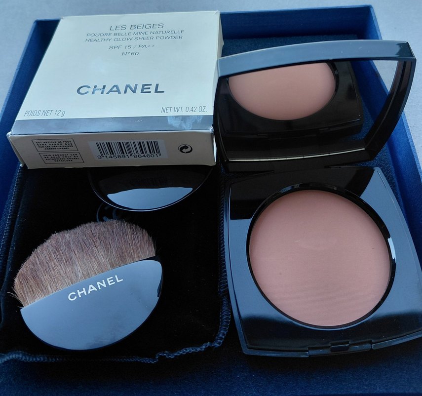 Chanel Les Beiges Sağlıklı Işıltılı Pudra, N°60 numara, parlak bej tonunda ve SPF15 korumasıyla 12 gr ağırlığında, Fransa yapımı.✨