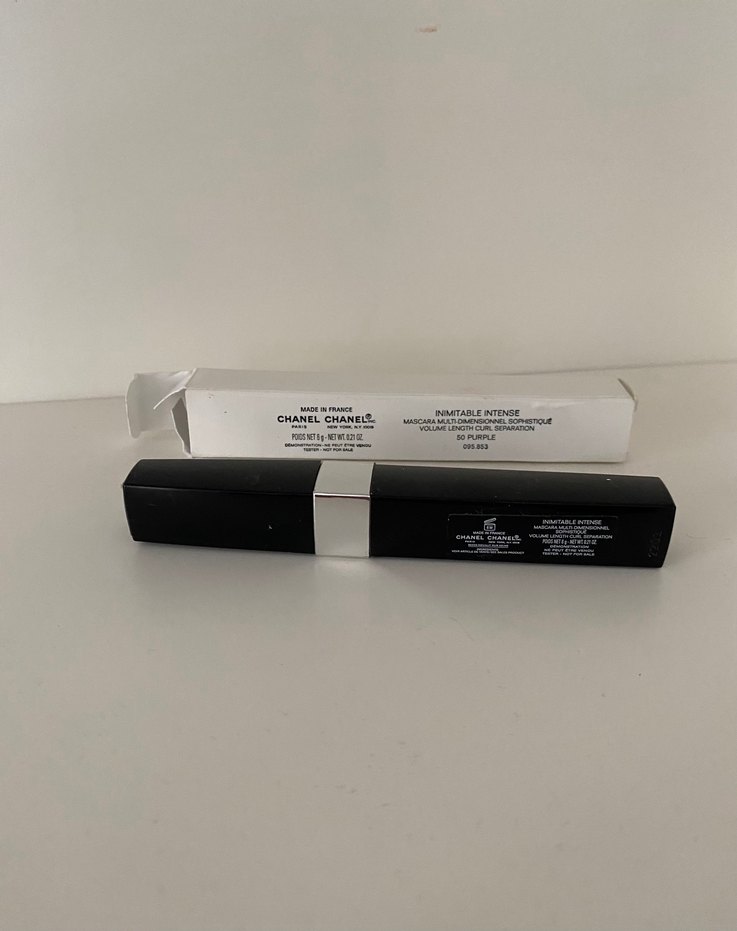 Orjinal Chanel maskara, koyu renkli, şık beyaz ve siyah ambalajda. Kirpiklere yoğun hacim ve kıvrım sağlar.