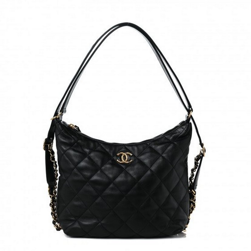 Chanel Siyah deri, kapitone desenli kadın omuz çantası, fermuarlı kapanışlı, modern klasik tarzda, günlük kullanım için uygundur.