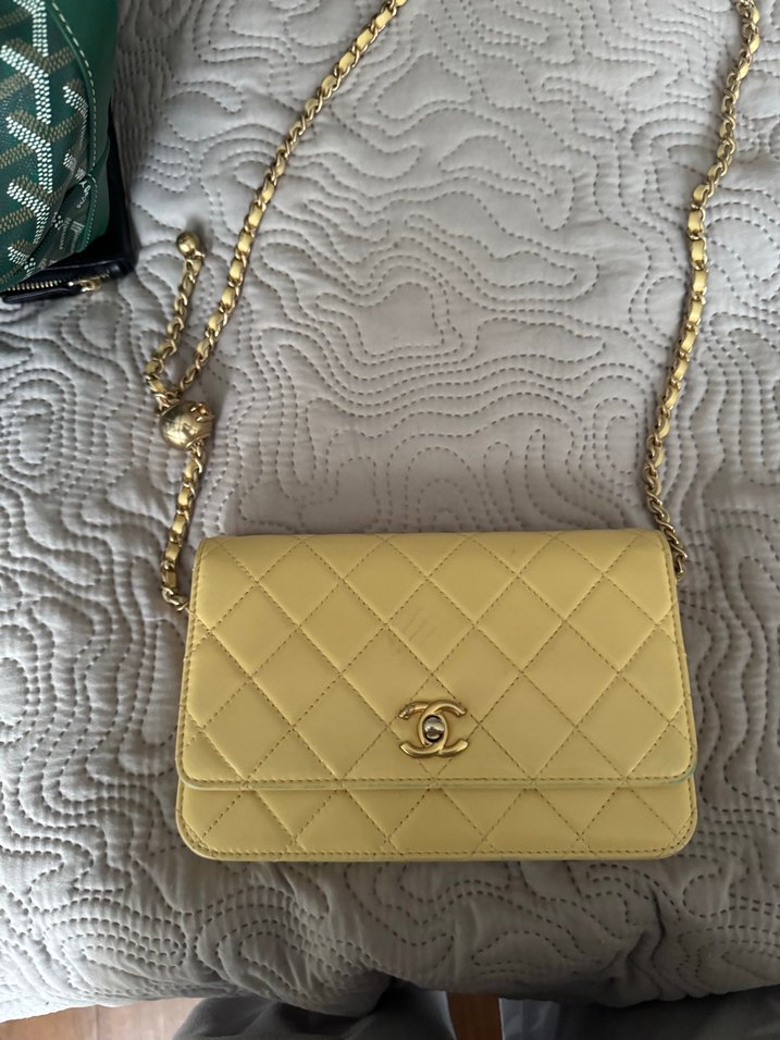 Chanel Zincir Detaylı Sarı Deri Kadın Çanta