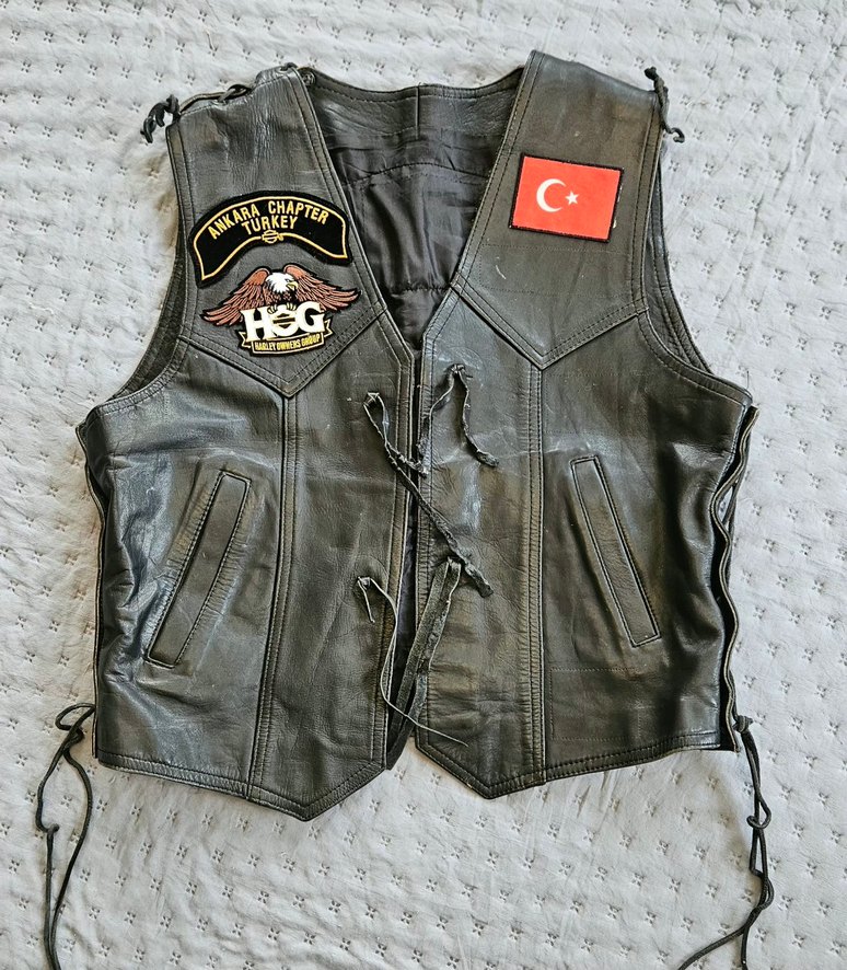 hakiki deri yandan bağcıklı iç dış cepleri bulunan motorcu yeleği. 40 beden olup, bağcıkları sayesinde 38-40-42 bedene uyumludur. Ön bağcıklarında kopma mevcuttur, unisex bir modeldir