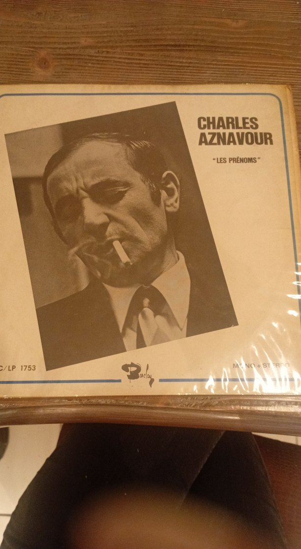 Charles Aznavour'un "Les Prénoms" albümü, vintage bir müzik kaydı.