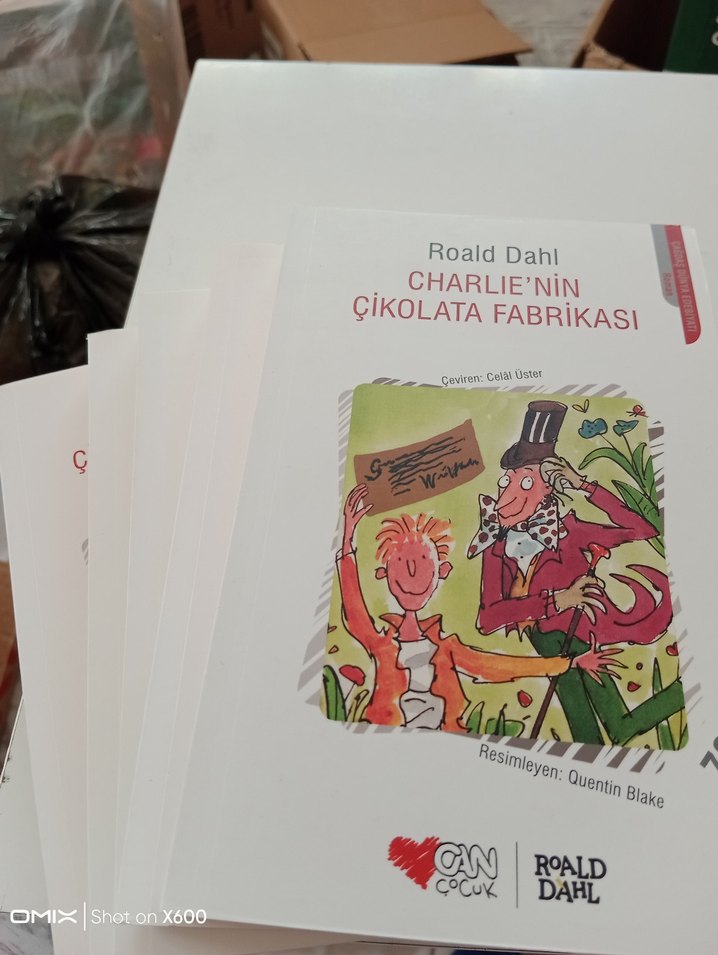 Roald Dahl'ın "Charlie'nin Çikolata Fabrikası" adlı çocuk kitabı, Quentin Blake'in renkli çizimleriyle.