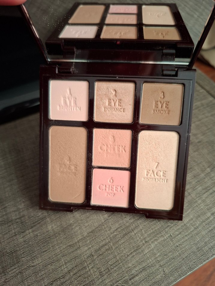 Oldukça az kullandım.Mat ve ışıltılı bej tonları içeren göz, yanak ve yüz için çoklu far paleti. Kolay uygulama için bölümler numaralandırılmış.