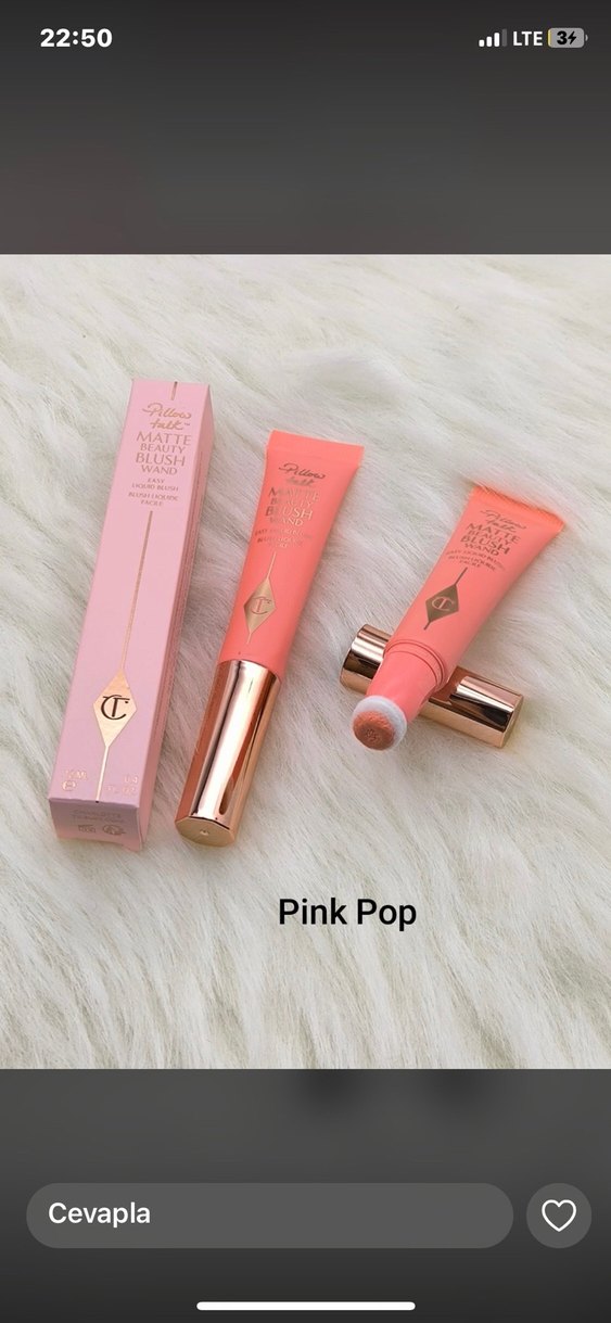 Charlotte Tilbury'nin 'Pink Pop' adlı pastel pembe mat allık wandı, yumuşak ve mat bir görünüm sağlar, uygulaması kolay uçlu wand ile.