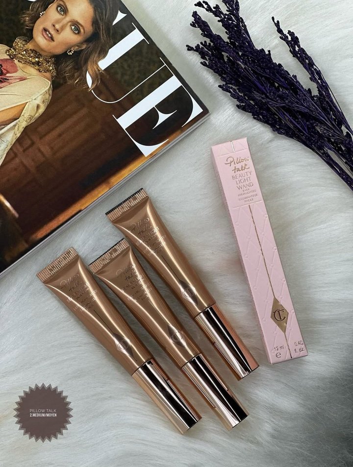 Charlotte Tilbury Pillow Talk serisi, parlak bej tonunda kapatıcı ve aydınlatıcı içerir. Kusurları gizler ve cilde parlaklık katar. Şık rose gold tüpte gelir. ✨