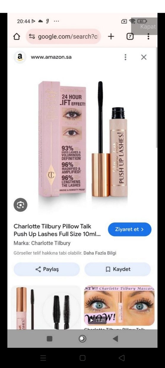 Charlotte Tilbury Push Up Lashes maskara, açık bej renginde, 24 saat kalıcı kaldırma etkisiyle kirpikleri hacimlendirir ve uzatır. Suya ve nem etkisine dayanıklıdır. ️