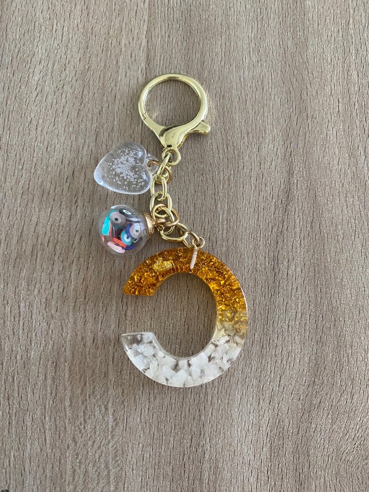 Parlak altın renkli halka ve boncuk detaylı bohem tarzda anahtarlık. Kalp ve renkli boncuklarla retro bir dokunuş sunar.