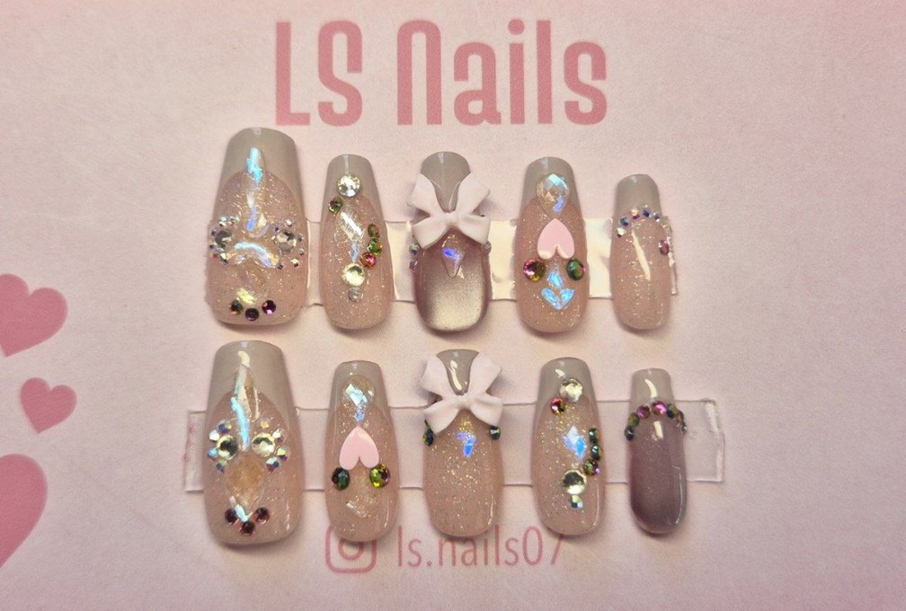 < Düğün, nişan, kutlama, günlük kullanımı için de uygun charmlı pembe bej tonlarında jel tırnak > Lütfen ilan açtırınız! Tırnaklar el yapımı ✨️ Fotoğraflarda elimizde olan tırnak şekilleri ve boyutları bulunmaktadır ordan seçip ilanınızı açtırmadan önce bedeninizi ve istediğiniz tırnak boyutu belirtiniz Kutunun içinde 10 adet seçtiğiniz tırnak, 20 adet yapıştırıcı, tırnak eti ittirme çubuğu, törpü, normal ve alkollü mendil ile gönderim sağlanıyor Kişiye özel siparış yapılır ✨️