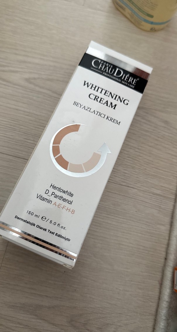 Chaudier tarafından üretilen 150 ml beyazlatıcı krem, Hentowhite, D-Panthenol ve A, E, F, H, B vitaminleri içerir. Dermatolojik olarak test edilmiştir.