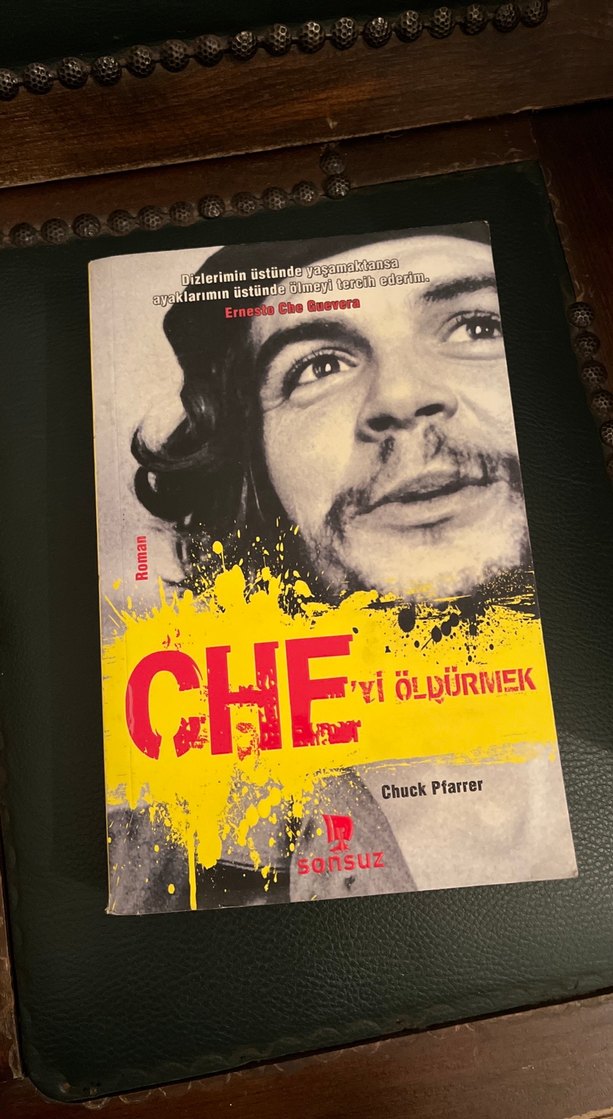 Chuck Pfarrer'ın yazdığı 'CHE - Evi Öldürmek' biyografi kitabı, Ernesto Che Guevara'nın yaşamını ve mücadelesini anlatıyor. Kitap, etkileyici görseller ve alıntılar içeriyor.