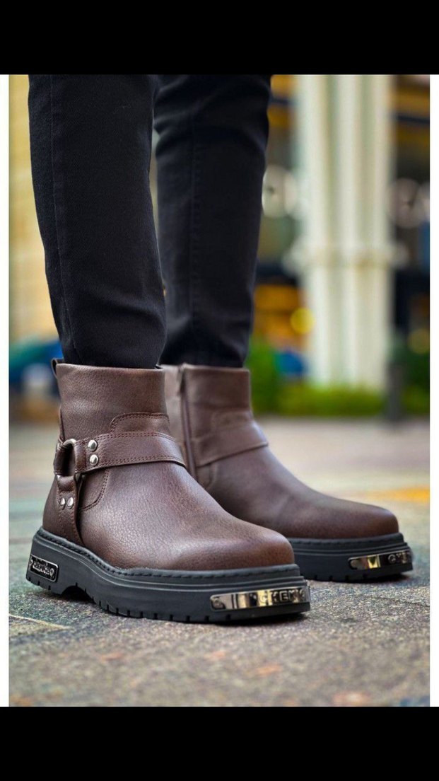 Chekich Bot Orijinal Deri Kahverengi Deri Tokalı Erkek Botu