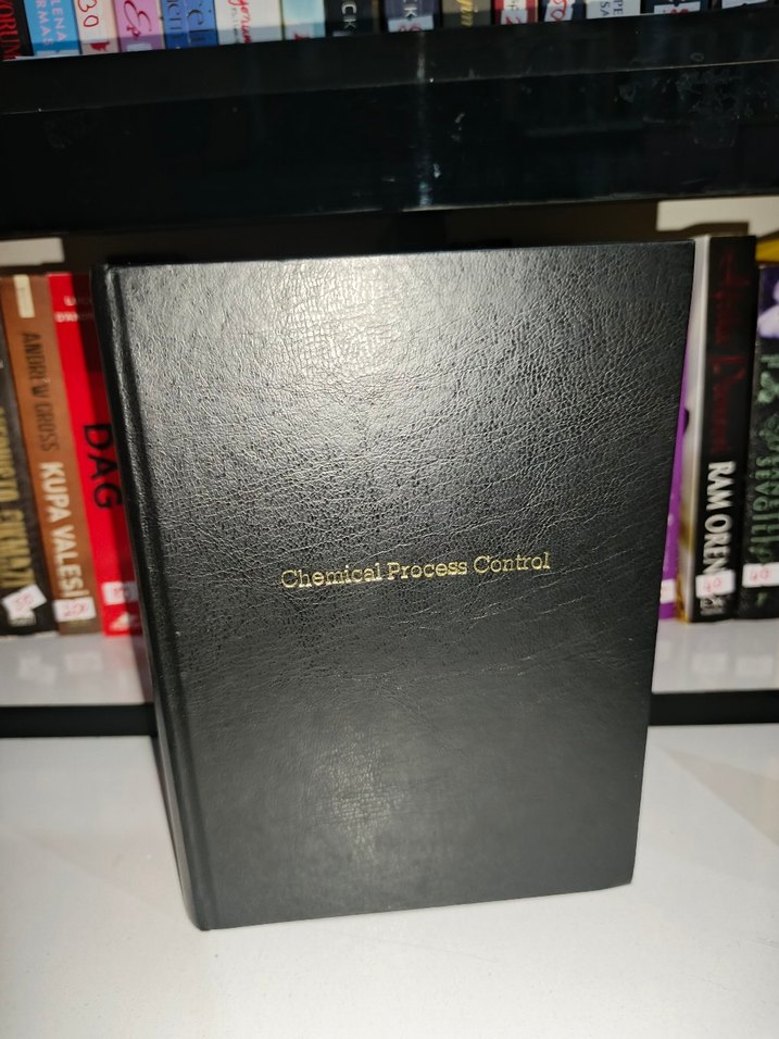 Chemical Process Control, kimyasal süreç kontrolü üzerine sert kapaklı bir üniversite kitabıdır. Siyah kapak üzerinde altın renkli yazı bulunmaktadır.