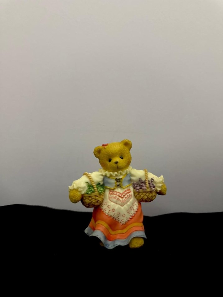 Cherished Teddies İtalyan, sepetler taşıyan, geleneksel kıyafetli renkli ayıcık biblo. Koleksiyonlara şıklık katar.