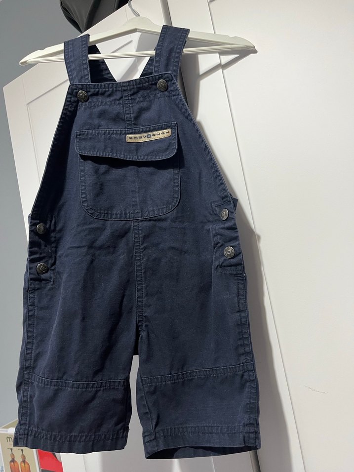 Koyu lacivert renkli, tokalı askılı, ön cepli, fitted kesim erkek çocuk kot tulum. Sokak stili için uygun.