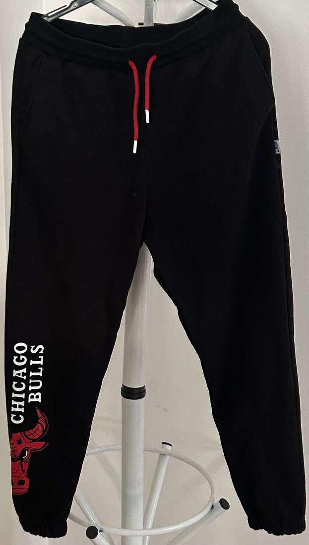 DeFacto NBA marka S beden ( alt boy 101 cm, bel 38 cm lastikli ve bağcıklı, paça altı 13 cm lastikli, ) siyah renk , içi yünlü, alt yanları “ Chicago Bulls boğa resimli ve yazılı” detaylı , geniş kesim , erkek pamuklu eşofman altı . Bir kez denendi. Kullanılmadı. Siyah renk, fitted kesim erkek eşofman altı. Chicago Bulls baskısı ve kırmızı bağcık detayları ile yumuşak ve rahat kumaştan üretilmiştir. Spor tarzına uygundur.