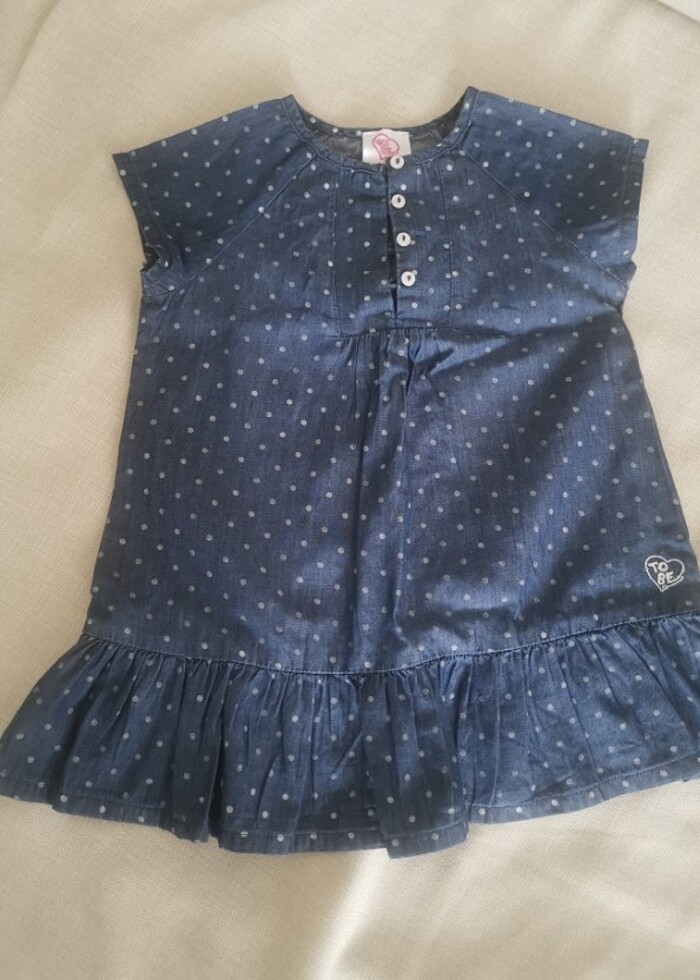 Chicco 2 yaş yumuşak ince kot elbise hiçbir problemi yoktur sadece 2 kez giyildi üzerindeki puantiyelerde solma yok alındığındada fotoğraftaki gibi taşlanmış gibi bir görüntüsü vardı