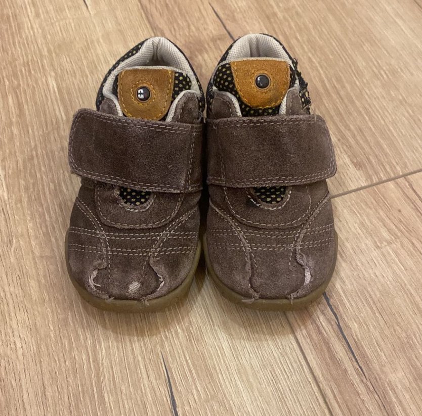 Kahverengi süet malzemeden yapılmış, tokalı erkek bebek ilk adım ayakkabısı. Gri iç astarı ve trend sokak stili bulunur. Chicco marka kaliteli bebek ayakkabısı, iyi durumda, deri/süet, 22 numara