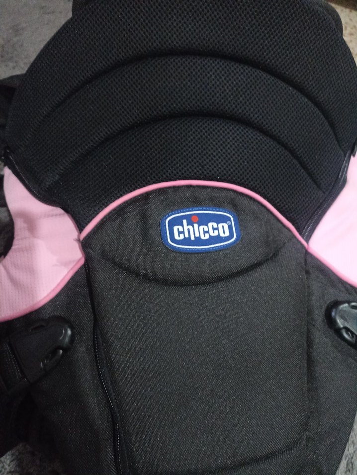 Chicco marka pembe bebek taşıyıcı, yumuşak ve nefes alabilir kumaş ile rahat taşıma sağlar.