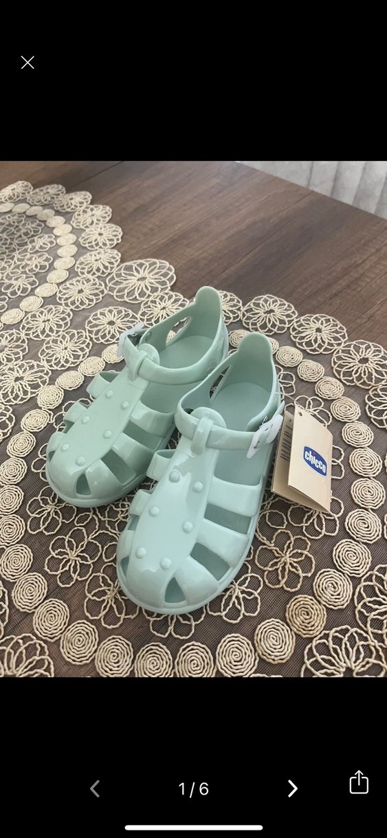 Turkuaz pastel renkli çocuk sandaletleri dayanıklı lastik malzemeden üretilmiş, tokalı kayışla sabitlenir. Düz ve desen içermeyen sade tasarıma sahiptir. Chicco marka sıfır ürün