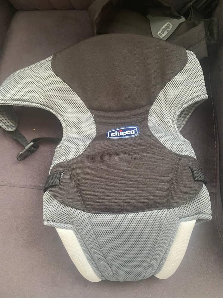 Chicco marka gri bebek taşıyıcı, nefes alabilen file detaylı ve yastıklı destekli rahat taşıma sağlar. Ayarlanabilir kayışlar mevcuttur.
