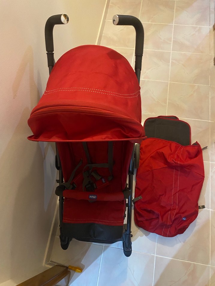 Koyu kırmızı renkte, tente ve emniyet kemerli rahat oturma alanına sahip bebek arabasıdır.Çok kullanılmadı ikinci arabamızdı Tulumu ile birlikte gelir. Yağmurluğu da mevcut tekerleri sorunsuz katlanınca az yer kaplar.Tutma yerlerinin süngerleri sorunsuz