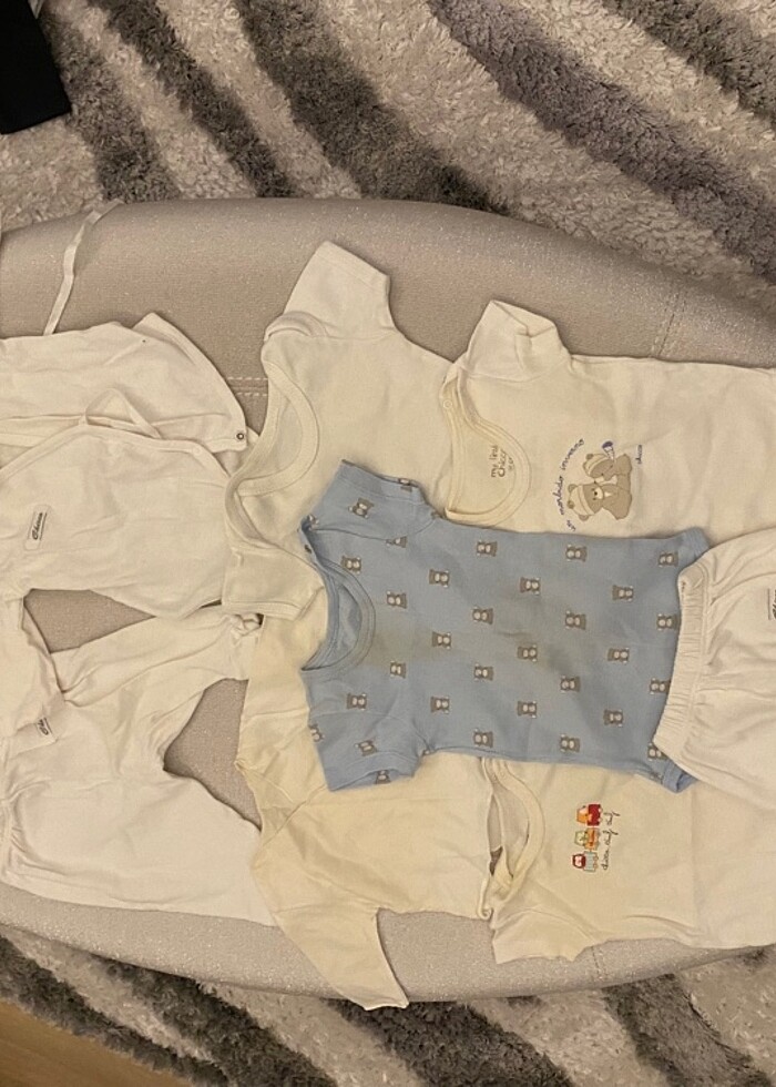 Çoklu parça, zıbın , tulum , alt ,üst , şapka , eldiven , hastane çıkışı gibi