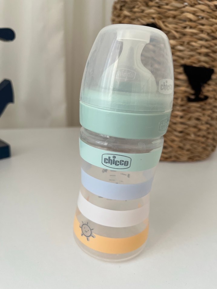 Chicco markalı pastel yeşil renkte, kolay tutulan tasarıma sahip bebek biberonu. Yumuşak pastel tonlarda çizgiler ve küçük güneş figürü bulunur. 3 4 kez dışarı çıkarken sütümü sağıp koydum