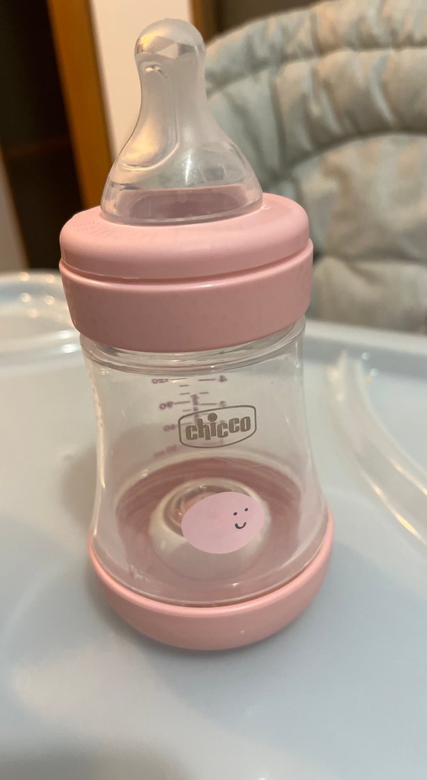 Chicco marka pastel pembe renkte, yumuşak emzikli ve ölçü işaretli bebek biberonu. Bebek beslemede rahatlık sağlar.