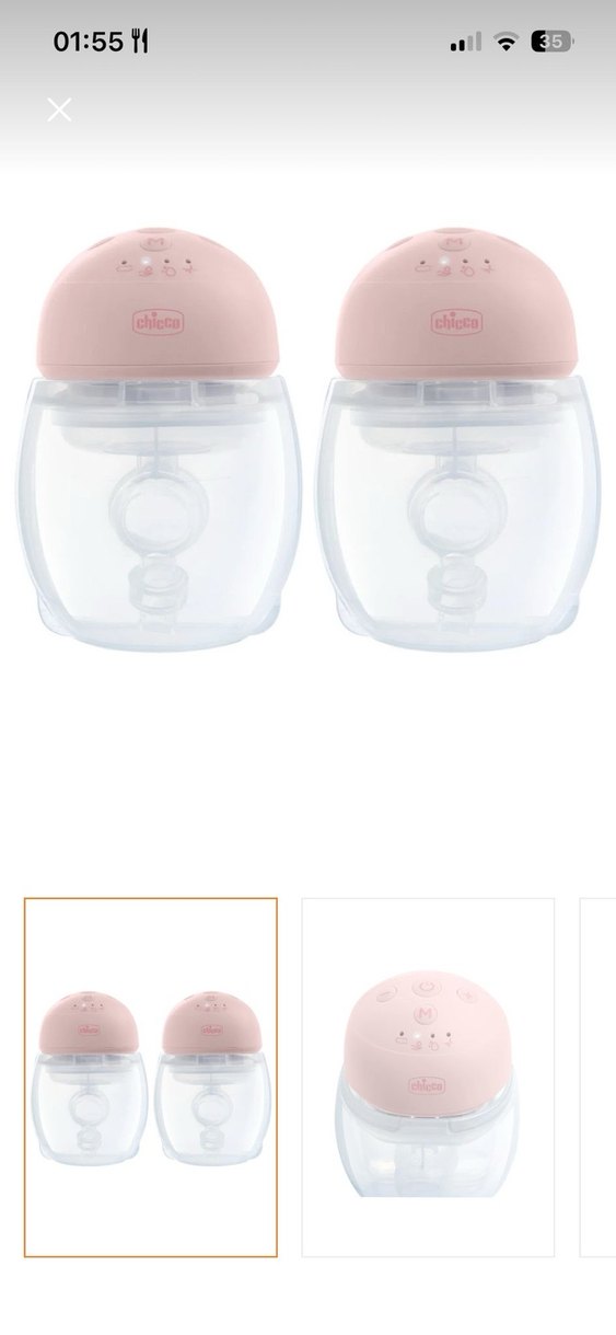 Chicco'nun pembe pastel tonlarda elektrikli 2'li göğüs pompası seti, konforlu ve etkili süt sağımı sağlar. Ürün sıfır sayılır hiç kullanılmadı