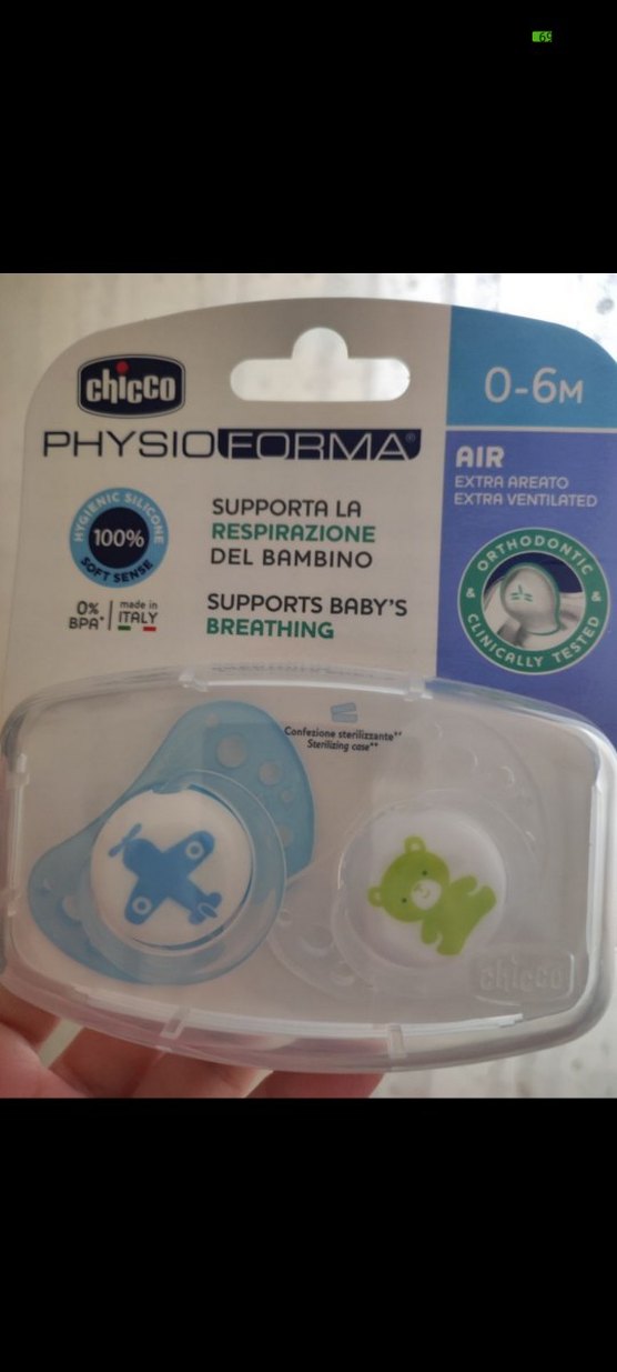 Chicco PhysioForma mavi emzik, 0-6 ay için ekstra havalandırmalı ve bebeğin nefes almasını destekler. %100 yumuşak silikon, BPA içermez, klinik olarak test edilmiştir.