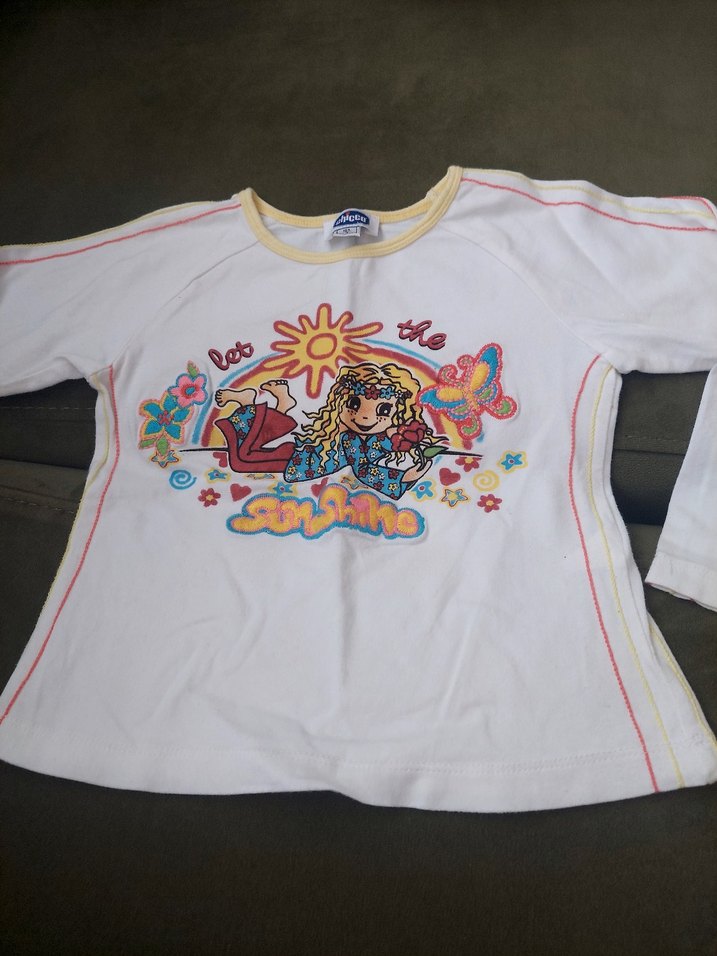 Renkli baskılı, uzun kollu kız tişörtü.Temiz ve orjinaldir