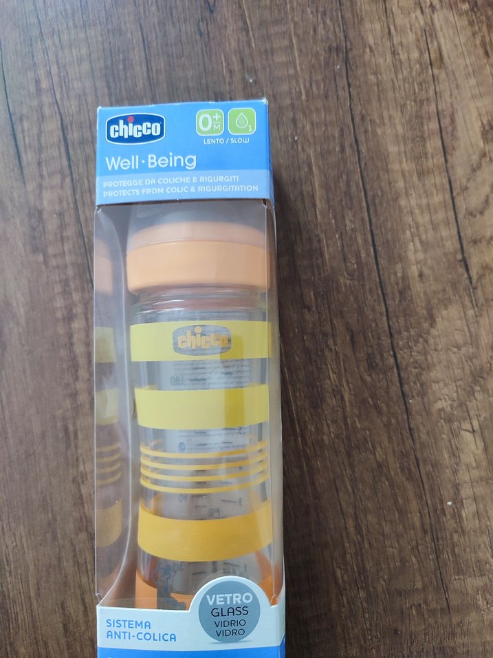 Chicco Well-Being sarı cam biberon, kolik ve kusmayı önleyen anti-kolik sistemi içerir. Yavaş akışlıdır ve bebeğiniz için güvenlidir.Sifir ambalajında hiç kullanılmadı.